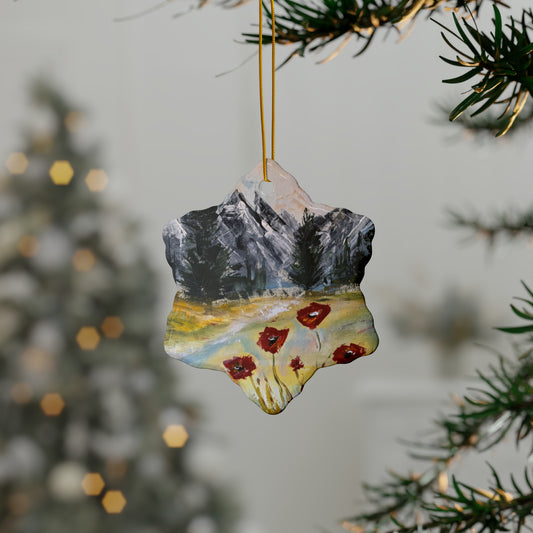 Mountain Majesty: Crimson Blooms and Pine Peaks (Ceramic Ornaments (1pc, 3pcs, 5pcs, 10pcs))